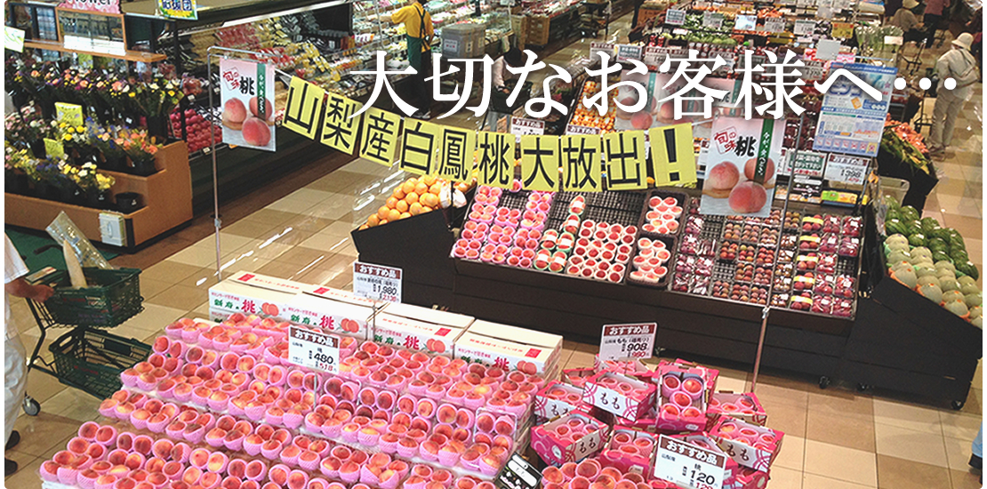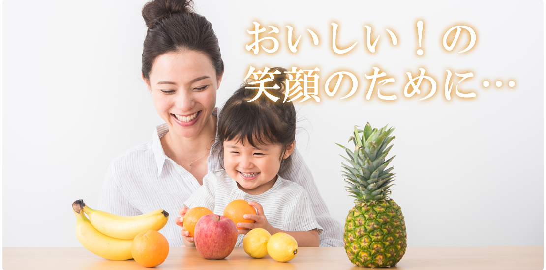 大阪府中央卸売市場には、日本各地から季節の新鮮な果物が集まってきます。 太陽と大地の恵みがはぐくんだ果物には生産者の方々の想いがぎっしり詰まっています。 その想いとともに果物をお客様のもとへ責任を持ってお届けするのが我々の使命だと考えています。 すべては「おいしい!」の笑顔のために…